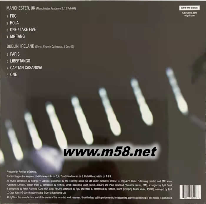 曼徹斯特和都柏林現(xiàn)場演奏會 LIVE MANCHESTER AND DUBLIN 黑膠(m58.net) 墨西哥速彈吉他二人組RODRIGO Y GABRIELAR可謂是木吉他界的第一快指,在吉他界有著廣泛的聲譽,這是一2004年在曼徹斯特和都柏林的現(xiàn)場演奏會,至此他們終于登上了世界音樂之旅的舞臺。180克黑膠,