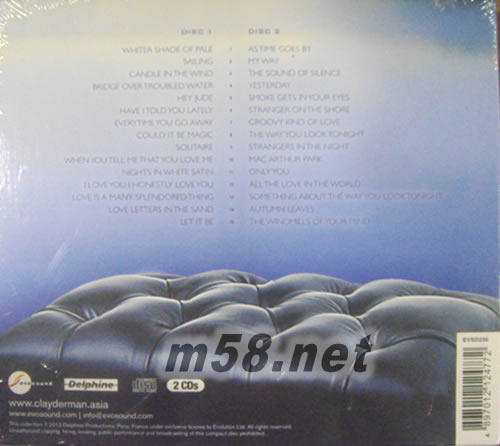 DISK 1 CD 1. Whiter Shade Of Pale 2. Sailing 3. Candle In The Wind 4. Bridge Over Troubled Water 5. Hey Jude 6. Have I Told You Lately 7. Everytime You Go Away 8. Could It Be Magic 9. Solitaire 10. When You Tell Me That You Love Me 11. Nights In White Satin 12. I Love You I Honestly Love You 13. Love Is A Many Splendored Thing 14. Love Letters In The Sand 15. Let It Be DISK 2 CD 1. As Time Goes By 2. My Way 3. The Sound Of Silence 4. Yesterday 5. Smoke Gets In Your Eyes 6. Stranger On The Shore 7. Groovy Kind Of Love 8. The Way You Look Tonight 9. Strangers In The Night 10. Mac Arthur Park 11. Only You (Sung By The Platters) 12. All The Love In The World 13. Something About The Way You Look Tonight 14. Autumn Leaves 15. The Windmills Of Your Mind