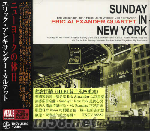 都會閑情(HIFI昔士風重奏)(m58.net) 都會閑情(HI FI昔士風四重奏) 美國著名昔士風名家ERIC ALEXANDER以四重奏演繹多首名曲,SUNDAY IN NEW YORK是賞心悅而耳的大都會情懷作品。MY ROMANCC正好用來引證日本VENUS的靚絕音色,每一細節皆表露無遺,天碟級爵士專輯。
