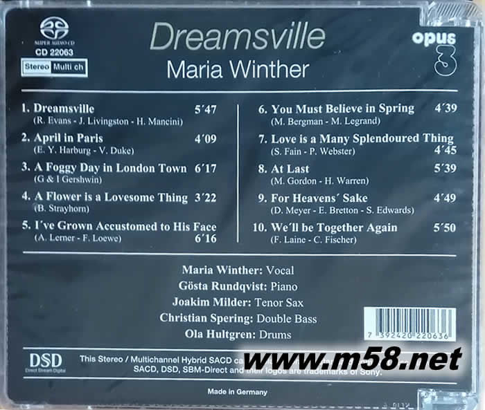 爵士留情 Maria Winther Dreamsville Hybrid Multichannel SACD(瑞典OPUS 3 發燒工作室)專輯背面圖片