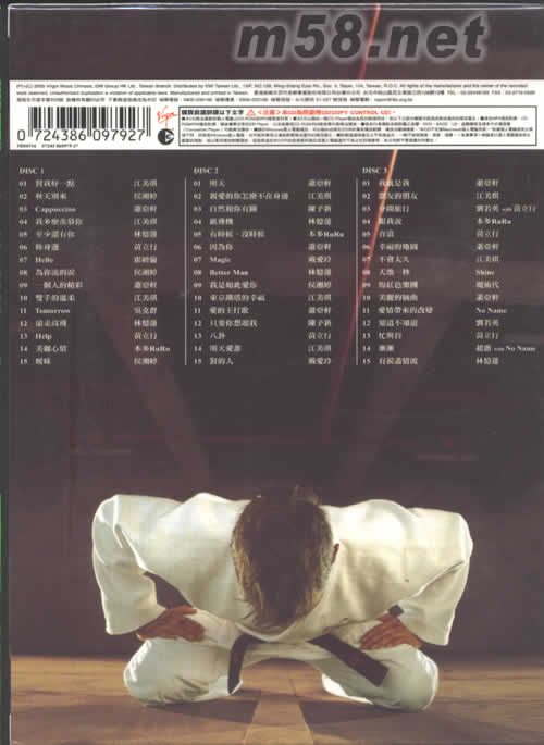 DISC 1 01. 對我好一點–江美琪 02. 秋天別來–候湘婷 03. Cappuccino–蕭亞軒 04. 我多么羨慕你–江美琪 05. 至少還有你–林憶蓮 06. 你身邊–黃立行 07. Hello–霍經倫 08. 為你流的淚–侯湘婷 09. 一個人的精彩–蕭亞軒 10. 雙手的溫柔–江美琪 11. Tomorrow–吳克群 12. 遠走高飛–林憶蓮 13. Help–黃立行 14. 美麗心情–本多RuRu 15. 曖昧 DISC 2 16. 明天–蕭亞軒 17. 親愛的你怎么不在身邊–江美琪 18. 自然和你有關–陳予新 19. 紙飛機–林憶蓮 20. 有時候、沒時候–本多RuRu 21. 因為你–蕭亞軒 22. Magic–戴愛玲 23. Better Man–林憶蓮 24. 我是如此愛你 (獨唱版)–侯湘婷 25. 東京鐵塔的幸福–江美琪 26. 愛的主打歌–蕭亞軒 27. 只要你想起我–陳予新 28. 八卦–黃立行 29. 明天愛誰–江美琪 30. 對的人–戴愛琴 DISC 3 31. 我就是我–蕭亞軒 32. 朋友的朋友–江美琪 33. 分開旅行–劉若英、黃立行、戴愛琴 34. 跟我說–本多RuRu 35. 音浪–黃立行 36. 幸福的地圖–蕭亞軒 37. 不會太久–江美琪 38. 天地一秒–Shine 39. 粉紅色樂團–魔術代 40. 美麗的插曲–蕭亞軒 41. 愛情帶來的改變–No Name 42. 知道不知道?–劉若英 43. 忙與盲–黃立行 44. 漸漸–趙薇、No Name 45. 有淚盡情流–林憶蓮
