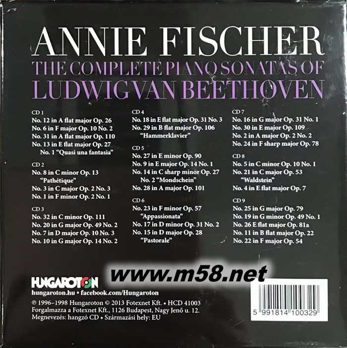 貝多芬 鋼琴奏鳴曲全集 安妮費雪(Annie Fischer)鋼琴 9CD專輯背面圖片