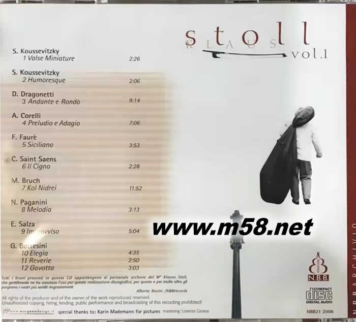 klaus stoll vol.1 與牛筋共舞(m58.net) 柏林愛樂首席精彩演繹/改編自:帕格尼尼/ 圣桑/ 科瑞里…等九位古典名家經(jīng)典之作 起用兩把義大利+七世紀(jì)名琴錄製,松香味十足 錄音效果超卓,發(fā)燒友必備試音利器 義大利原裝進(jìn)口