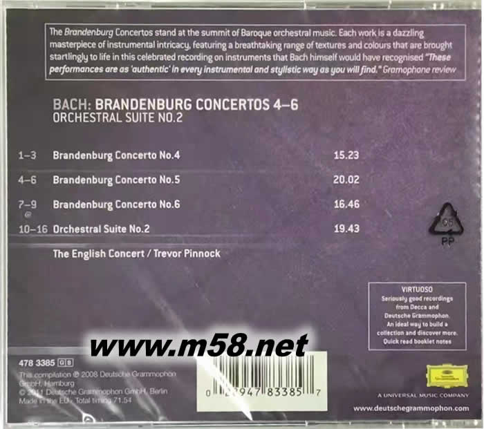 平諾克指揮 - 巴赫 布蘭登堡協(xié)奏曲第4-6號 VIRTUOSO大師系列專輯背面圖片