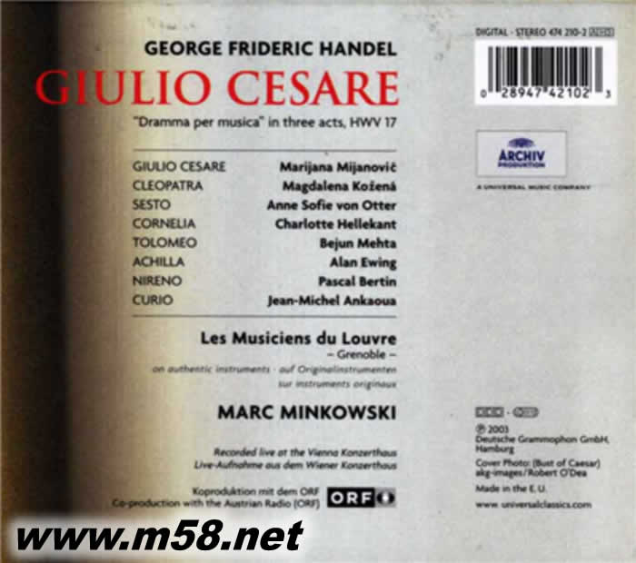 Marc Minkowski - Handel:Giulio Cesare 亨德爾:朱利奧 愷撒大帝 3CD套裝專輯背面圖片