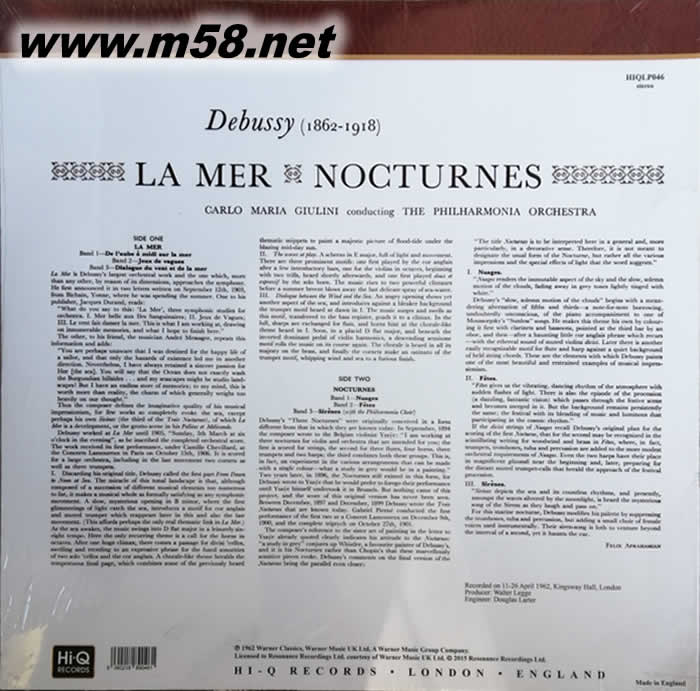 德布西-海、夜曲 Debussy : La Mer, Nocturnes/Philharmonia Orchestra, Carlo Maria Giulini 黑膠(m58.net)