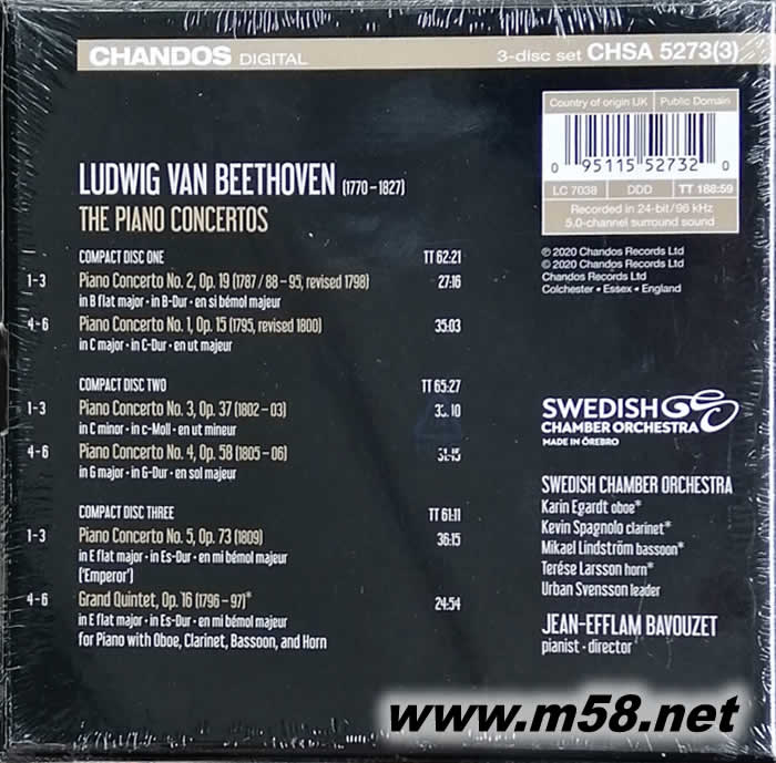 Beethoven: Piano Concertos 貝多芬: 五首鋼琴協(xié)奏曲(全集) / 大五重奏 SACD套裝專輯背面圖片