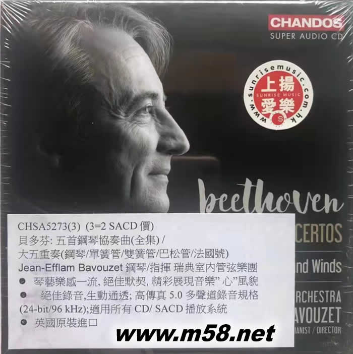 Beethoven: Piano Concertos 貝多芬: 五首鋼琴協(xié)奏曲(全集) / 大五重奏 SACD套裝(m58.net) 貝多芬: 五首鋼琴協(xié)奏曲(全集) / 大五重奏(鋼琴/單簧管/雙簧管/巴松管/法國號) Jean-Efflam Bavouzet鋼琴/指揮 瑞典室內(nèi)管弦樂團 琴藝樂感一流, 絕佳默契, 精彩展現(xiàn)音樂” 心”風(fēng)貌 絕佳錄音,生動通透; 高傳真5.0 多聲道錄音規(guī)格 (24-bit/96 kHz);適用所有CD/ SACD播放系統(tǒng) 英國原裝進(jìn)口