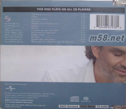 1. Dell'amore Non Si Sa 2. L'attesa 3. Un nuovo giorno (The First Day of My Life) 4. Tu Ci Sei 5. Semplicemente (Canto Per Te) 6. Libertà 7. Per Noi 8. Le Parole Che Non Ti Ho Detto 9. Sin Tu Amor 10. Sempre O Mai 11. In-Canto 12. Quante Volte Ti Ho Cercato 13. BONUS track: Go Where Love Goes