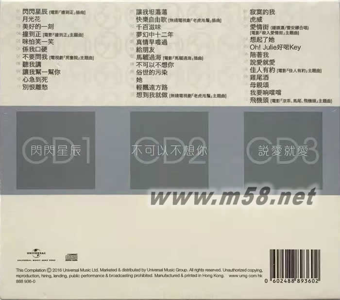 閃閃星辰 3 in 1 set: 鐘鎮(zhèn)濤第二集 環(huán)球經(jīng)典禮贊 3CD套裝(m58.net) 3CD in1Set套裝特惠裝共10款 (內(nèi)裝CD獨(dú)立包裝) 限量發(fā)行 原裝封面、底加歌詞本式樣.原汁原味「膠盒版」.終極質(zhì)量珍貴