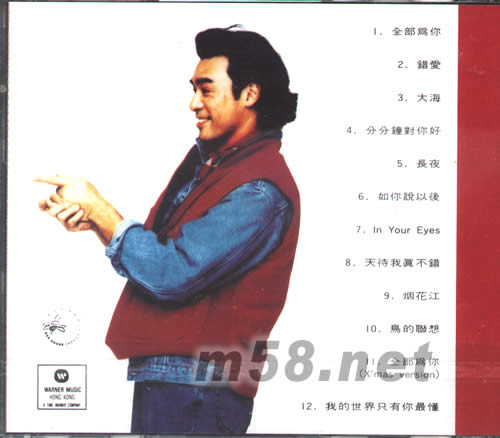 1、全部為你 2、錯愛 3、大海 4、分分鐘對你好 5、長夜 6、如你說以后 7、IN YOUR EYES 8、天待我真不錯 9、煙花江 10、鳥的聯想 11、全部為你(X‘MAS VERSION) 12我的世界只有你最懂