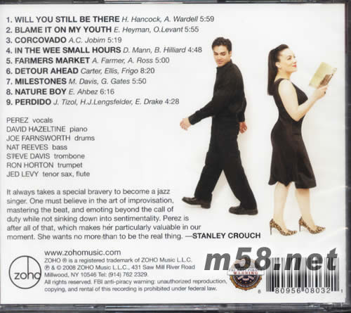 熾熱迷情(HIFI爵士女聲)(m58.net) 實力派爵士女歌手perez伙拍多位樂土猛將演繹多首經典名曲.柔情的唱腔在琴邊獻唱出深情妙韻.濃烈的拉丁情懷把熾熱之情推回極點.音色通透靚絕,人聲圓潤,定位清晰.