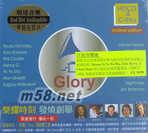 榮耀時刻(藍色封面)巨星音樂匯 HDCD 24Bit(m58.net) 齊集多位世界頂級音樂大師分別演繹多首動人旋律,包括電影配樂大師James Horner, Yo Yo Ma, VangeIis, Kenny G, Chris Botti, Jim Brickman, Yanni及配樂大師John Barry等,粒粒巨星你帶來一連串世界級的悅耳旋律。Sony Music與Chi-Lin Music攜手打造出這張榮譽專輯,HDCD 24Bit重新混音推出音色通透靚絕。