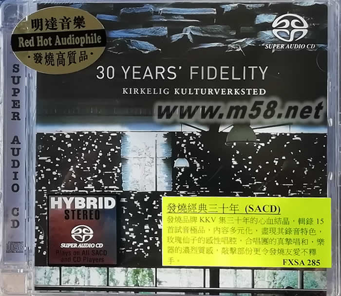 KKV發燒經典三十年 SACD 劉漢盛推薦 發燒名盤(m58.net) 千呼萬喚始出來,音響論壇主編劉漢盛強力推薦發燒名盤,發燒品牌KKV集三十年的心血結晶,收錄十五首試音極品,內容多元化,盡現其錄音特色,玫瑰仙子的感性唱腔,合唱團的真摯唱和,樂器的濃烈質感,敲擊部份更令發燒友愛不釋手。原裝母帶重新混音再造,並以SACD錄製,音色、節奏豐富而具立體感,低頻、敲擊定位等更勝往昔,原裝德國版,限量發行!
