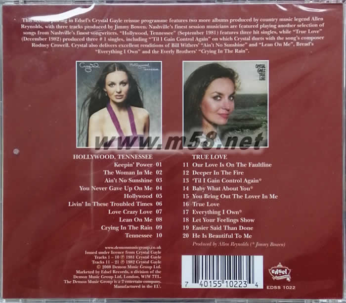 長發妹 人靚歌甜 HOLLYWOOD,TENNESSFEE+TRUE LOVE(m58.net) 靚聲女歌手CRYSTAL GAYLE 兩張成名黑膠名盤以單CD推出,收錄多首上榜名曲不容錯過