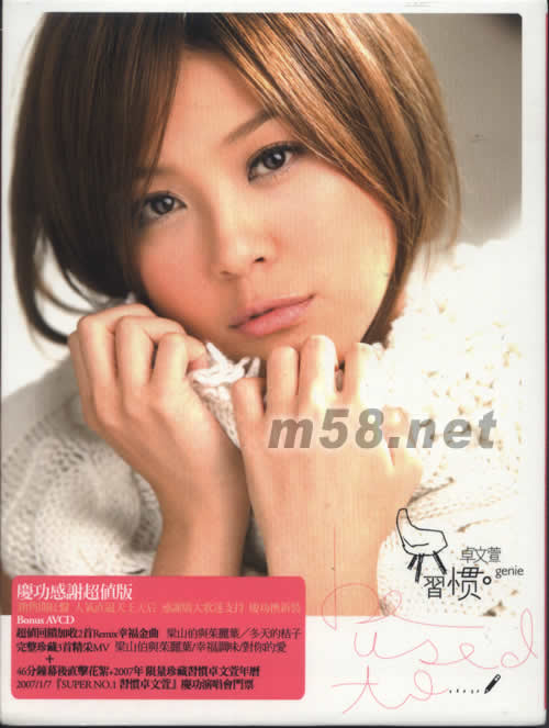 習慣(CD+AVCD)(m58.net) 《習慣》是卓文萱的第二張個人國語專輯,在新專輯的封面,卓文萱嘗試很多不一樣的風格和造型,新專輯要給歌迷一個新的感覺。卓文萱愛上進錄音室的感覺,在錄音室就好象在家一樣有安全感,可以從頭到尾享受在一個人的空間盡情高歌。《習慣》專輯收錄了「Super No 1 」、「對你的愛」、「梁山伯與茱麗葉」和「冬天的桔子」等新歌。 主打歌「Super No 1」是電視劇《戀愛女王》的片頭曲,這首歌講述一對戀人充滿幸福和誘惑,兩個人過著甜蜜和浪漫的新生活。戀人每天一張雙眼就有愛,且裝著迷糊。聽眾可感受到愛的力量,情人就是我們生命中的「Super No 1」,兩個人一起每天都那么精彩。 Bonus AVCD:超值回饋加收2首Remix幸福金曲[梁山伯與朱麗葉/冬天的桔子]完整珍藏3首精采MV[梁山伯與朱麗葉/幸福調味/對你的愛]+46分鐘幕后直擊花絮+2007年限量珍藏習慣卓文萱年歷