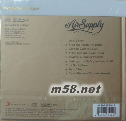 價(jià)格為估,以實(shí)到貨為準(zhǔn)! GREATEST HITS (SONY K2HD系列)(2017SONY 特價(jià)系列K2HD)(m58.net)