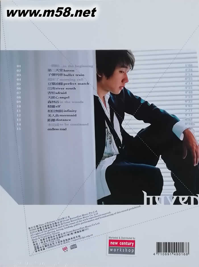 01. 一開始... In the Beginning 02. 第二天堂 Haven 03. 子彈列車 Bullet Rain 04. 起床了 Morning Call 05. 豆漿油條 Perfect Match 06. 江南 River South 07. 害怕 Afraid 08. 天使心 Angel 09. 森林浴 In the Woods 10. 精靈 elf 11. 相信無限 Infinity 12. 美人魚 Mermaid 13. 距離 Distance 14. 未完成 To Be Continued 15. Endless Road