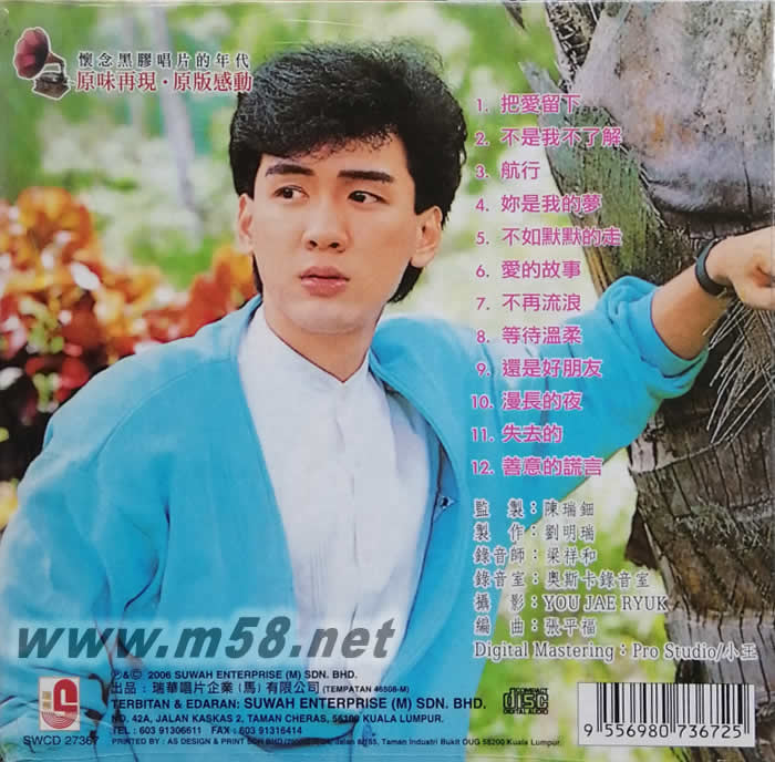 1.把愛留下 2.不是我不了解 3.航行 4.妳是我的夢 5.不如默默的走 6.愛的故事 7.不再流浪 8.等待溫柔 9.還是好朋友 10.漫長的夜 11.失去的 12.善意的謊言