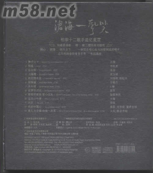 滄海一聲笑(珍藏版)(m58.net) 請(qǐng)點(diǎn)看產(chǎn)品正、背面大圖 柏菲十二歌手追憶黃沾 特邀香港影視歌三棲明星劉錫明 傾心、傾情、傾盡全力……一張完全用心血與深情制成的唱片 讓不朽的音符常青不老,永遠(yuǎn)流傳