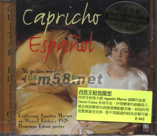 西班牙結他隨想DANIEL FORTEA(m58.net) 西班牙結他隨想 西班牙結他大師 AGUSTIN MARUR 演繹作曲家DANIEL FORTEA多首作品,抒情樂章的細绖投入感及爽朗樂章的典雅情懷動聽至極.結他的明亮質感達至完美,是不容錯過的結他音樂天碟.