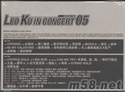 價格為估,以實到貨為準! 勁歌05勁歌金曲演唱會PART ONE/TWO(首批豪華限量版)(m58.net) 精美模型盒包裝及附送演唱會20多頁精美寫真集,超炫貼紙。值得收藏,不容錯過! 2004年橫掃香港樂壇的古巨基,終于達成了他出道11年以來的心愿,踏上紅館的舞臺舉行個人演唱會。古巨基的處男演唱會《古巨基05勁歌金曲演唱會》于2005年3月在紅館舉行,演唱會還沒開始,已經掀起一片搶票熱潮,兩度加場之后,依然場場爆滿,最后更要在4月加開演唱會的Part 2來滿足歌迷。 《古巨基05勁歌金曲演唱會PART ONE/ TWO》雙CD收錄了古巨基在演唱會中熱唱的30多首最精彩的歌曲,由早期「歡樂今宵」、「友共情」、「笑說想」,到他在2003年回歸香港樂壇后,第一首大熱作品「必殺技」、至近期的「大雄」、「愛與誠」、以及向哥哥張國榮致敬的「Monica」等。在演唱會中,古巨基更演唱了足本「勁歌金曲」,這首歌把已故的梅艷芳、陳百強及張國榮,還有王菲、張學友、郭富城、陳奕迅等人主唱39首的經典名曲變成一首10分鐘的medley。 在第二部最后一場時,現場的氣氛熱烈,觀眾不但兩度大喊encore,古巨基更激動得三度落淚,最后還跪地向觀眾道謝。想再一次感受現場的氣氛,便不要錯過這張演唱會LIVE CD!
