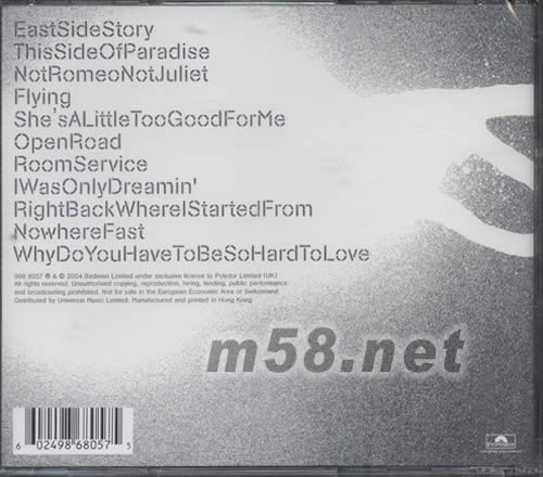 01. : Eastside Story 02. : This Side Of Paradise 03. : Not Romeo, Not Juliet 04. : Flying 05. : She's a Little Too Good For Me 06. : Open Road 07. : Room Service 08. : I Was Only Dreamin 09. : Right Back Where I Started From 10. : No Where Fast 11. : Why Do You Have To Be So Hard To Love