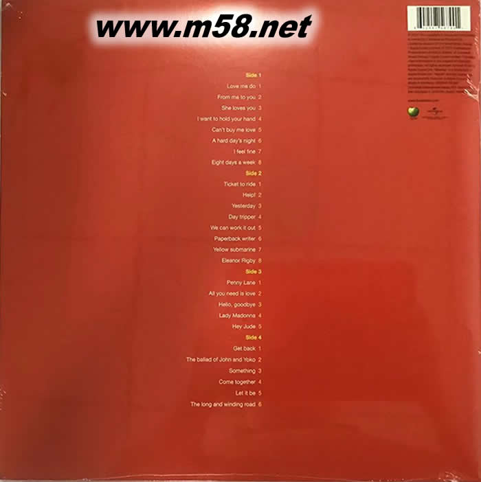 1. Love Me Do 2. From Me To You 3. She Loves You 4. I Want To Hold Your Hand 5. Can`t Buy Me Love 6. A Hard Day`s Night 7. I Feel Fine 8. Eight Days A Week 9. Ticket To Ride 10. Help! 11. Yesterday 12. Day Tripper 13. We Can Work It Out 14. Paperback Writer 15. Yellow Submarine 16. Eleanor Rigby 1. Penny Lane 2. All You Need Is Love 3. Hello, Goodbye 4. Lady Madonna 5. Hey Jude 6. Get Back 7. The Ballad Of John And Yoko 8. Something 9. Come Together 10. Let It Be 11. The Long And Winding Road