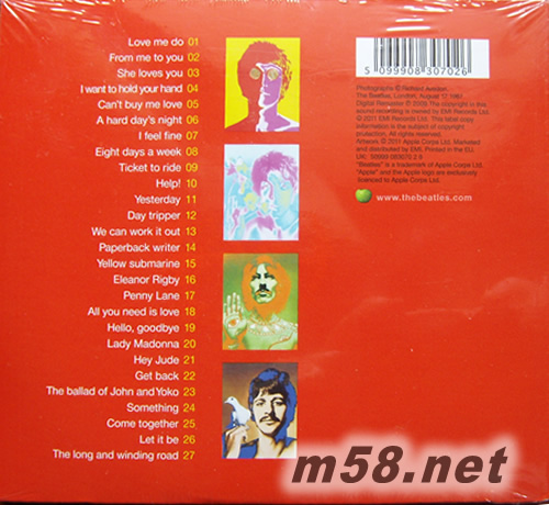 THE BEATLES 1 (精選27首紅色封面)(m58.net) 獨一無二,無可取代,世紀最愛!一張唱片,一個世紀,一個傳奇,唯一單CD、一次收錄27首Beatles冠軍歌曲;建構近代流行搖滾樂雛形的傳奇樂隊!超過79分鐘的經典最愛,享譽全球的Abbey Road Studios錄音室工程技師團隊,全新數位化母帶重新技術製作!Digisleeve豪華包裝、首批限定! ,