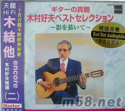 價格為估,以實到貨為準! 木結(jié)他·木村好夫精選二(m58.net) 日本結(jié)他天皇木村好夫的精湛彈奏技術(shù)舉世聞名,在木村好夫的演奏事業(yè)里,好歌猶如銀河之星。我們特別輯錄成五張?zhí)斓屵@些經(jīng)典金曲為您帶來無限思念,段段回憶。音色、旋律、節(jié)奏、意境、錄音均屬上乘佳作。