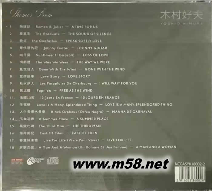 浪漫電影結(jié)他曲集發(fā)燒天碟 Romantic Guitar Screen Music(m58.net) 日本吉他天王-木村好夫的演奏技巧精湛但絕不刻意炫技,不疾不徐,盡顯一代大師的絕佳風(fēng)範(fàn)。King發(fā)燒級錄音效果,吉他線條呈現(xiàn)出清晰飽滿、晶瑩通透、飄逸輕靈的聽覺感受,可以說是吉他演奏的示範(fàn)級錄音。 日本地位最崇高的「吉他天皇」木村好夫,除了以精湛出色的吉他演奏技巧詮釋日本演歌獲得廣大樂迷的喜愛之外,他的編曲與演奏風(fēng)格更對整個亞洲音樂的發(fā)展具有關(guān)鍵性的影響,木村好夫的演奏早已成為一個時代的共同回憶。在許多老資格的發(fā)燒友心中,木村好夫更是「發(fā)燒」的代名詞,只要是他的專輯必定是錄音絕佳的作品。許多知名的吉他演奏家經(jīng)常是以表現(xiàn)高難度的演奏技巧來讓人折服,木村好夫則不然,他總是步調(diào)優(yōu)雅不疾不徐,表現(xiàn)輕快愉悅的曲子時不會顯得過動浮躁;詮釋抒情優(yōu)美的歌曲則沒有太多的憂傷煽情。