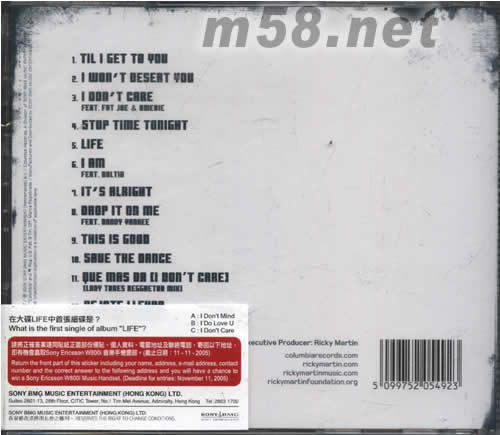 價格為估,以實到貨為準! LIFE(m58.net) 如果懷疑瑞奇馬汀的音樂實力,認定他的音樂早已靈感枯竭,距離《Sound Loaded》五年來第一張英文專輯《Life》勢必帶來絕地大反攻的強勁震撼,從制作概念、融合多變的樂風、編曲、演唱等各項評比,瑞奇馬汀都很有資格說,這絕對是最能代表他音樂生涯的里程作品,《Life》十首作品(專輯還有另兩首西班牙版作品)把所有瑞奇馬汀所能表現的優點都撐出有型風格,原創的、豐富的、深度的...不得不讓人引用珍娜杰克森1989年的劃時代鉅作《1814節奏國度》相提并論,《Life》帶來擁有國際觀點的音樂流派與他在心靈深處從來沒停止過的熱情,在現今流行歌壇缺乏獨特樂型的時刻,《Life》的適時出現不僅是一次成功的回歸,也絲毫讓人找不到任何這一兩年新起潮流的影子。