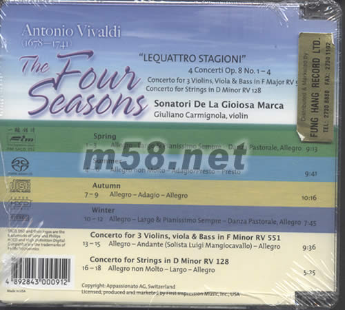 VIVALDI THE FOUR SEASON四季SACD(m58.net) 四季 FOUR SEASONS 本“四季”被評為[二十世紀(jì)十個(gè)最佳錄音]之一,您會在十秒鐘內(nèi),被它的演譯與音效所攝住。您會深信這是市面超過六百五十多個(gè)版本中的最佳。這是世紀(jì)的杰作!